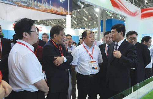 开幕伊始,中国石油和化学工业联合会会长李勇武,天津市副市长何树山带领着由中石油、中石化、华谊集团以及我集团公司等参展单位领导组成的巡展团来到展会现场进行巡回参观。当来到我集团展位时兴致勃勃地听取了集团园区发展和建设的相关介绍,并现场指出:每日大赛