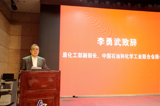 图为原化工部副部长、中国石油和化学工业联合会第三届理事会会长李勇武向大会致辞。