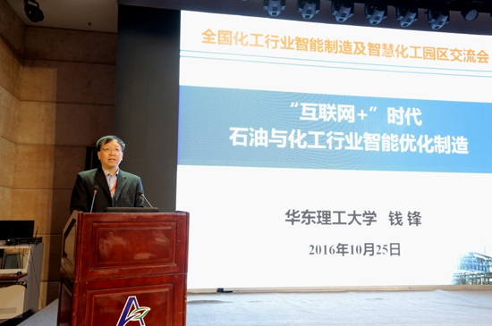 会上,华东理工大学副校长、中国工程院院士钱锋作了“互联网+”时代石油化工行业智能优化制造的报告。