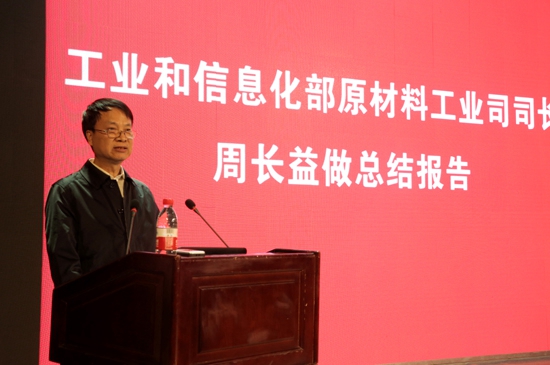 图为工业和信息化部原材料司司长周长益作总结报告。
