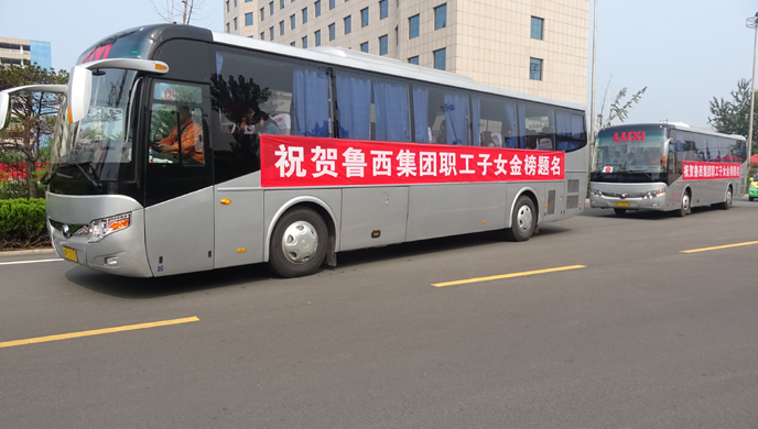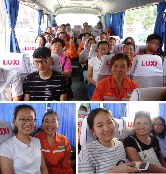 职工子女升学奖励参观活动”条幅的通勤客车,分别从聊城、平阴、东阿满载着欢声笑语,缓缓驶入工业园区。
