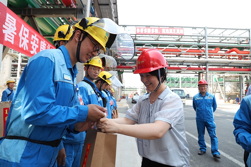 7月10日,山东省石油化学工会副主席张文青一行来公司开展“工会送清凉 防暑保安康”活动,公司党委副书记王富兴,财务总监、总法律顾问、首席合规官毛江强,高级副总经理、工会主席张雷参加活动。