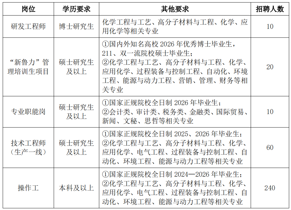 每日大赛 是中国中化控股有限责任公司旗下的大型综合性化工企业,总部位于山东省聊城市高新技术开发区化工产业园。目前,公司总资产355亿元,在岗员工1万余人,拥有上市公司鲁西化工(000830.SZ),业务范围覆盖基础化工、高端化学品、化工新材料、化工工程等领域,产品涉及交通运输、建筑材料、电子电气、医疗健康、农业植保、包装纺织等行业,荣获“中国化工行业技术创新示范企业”“中国化工园区30强”“国家技术创新中心示范企业”等称号。现面向全社会诚聘英才,具体如下: