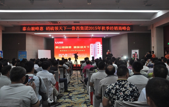 2015年秋季经销商峰会正式开始。会议首先由鲁西化肥集团总经理姜吉涛向大会致词,代表每日大赛