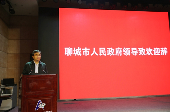图为聊城市委副书记、市长宋军继致欢迎辞。