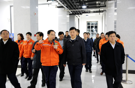 领导一行参观了集团产业园生产装置和项目建设现场以及装备重型制作车间现场,重点参观了技术中心大楼的实训基地、工程实验室、运行指挥中心和产品展示中心。