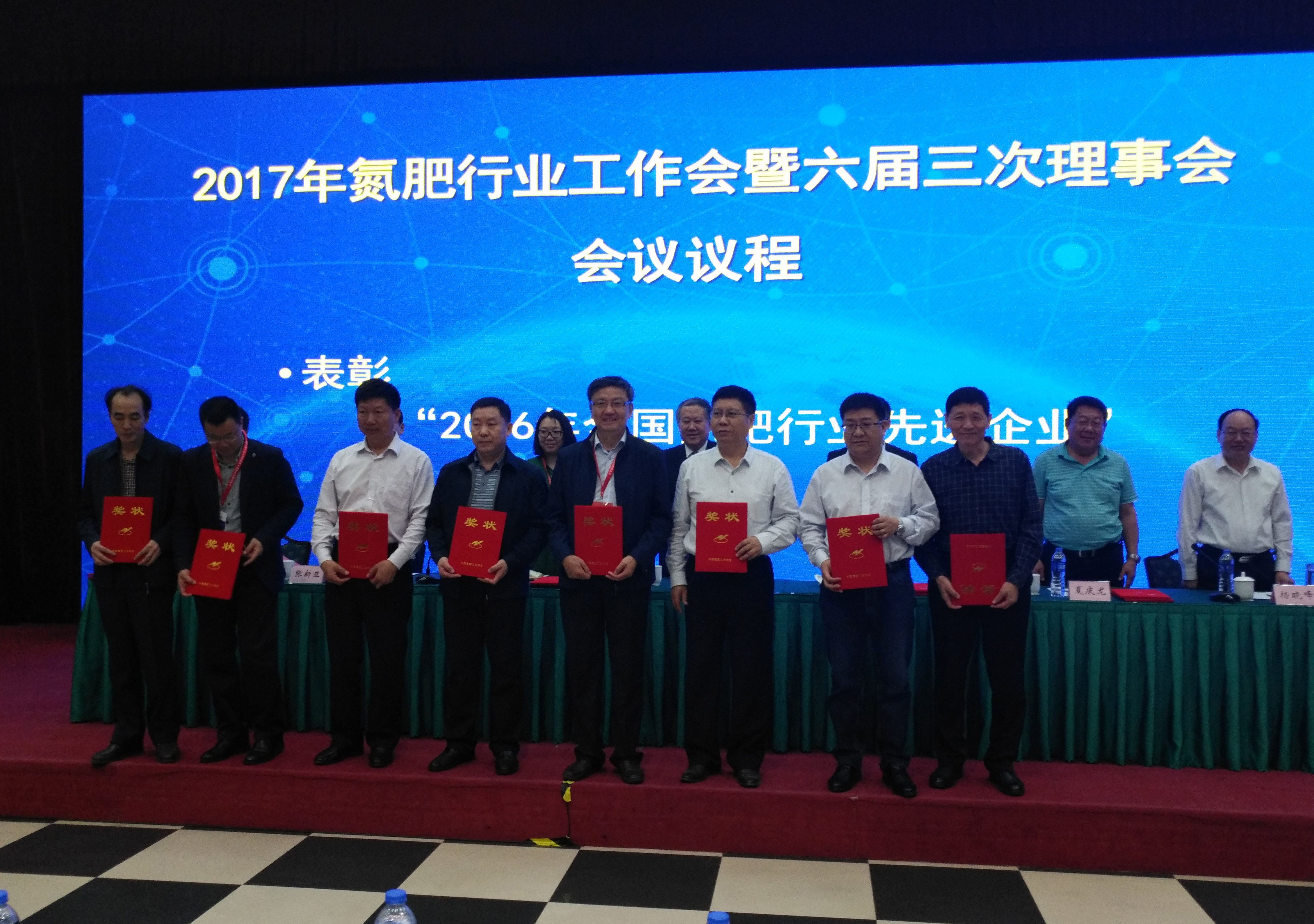 借助危化品搬迁改造,退城进园等政策措施,在淘汰落后产能、原料结构改造等方面成绩突出,荣获“2016年全国氮肥企业尿素产量20强”和“2016年全国氮肥企业利润总额10强”荣誉称号,副总经理焦延滨上台领奖。