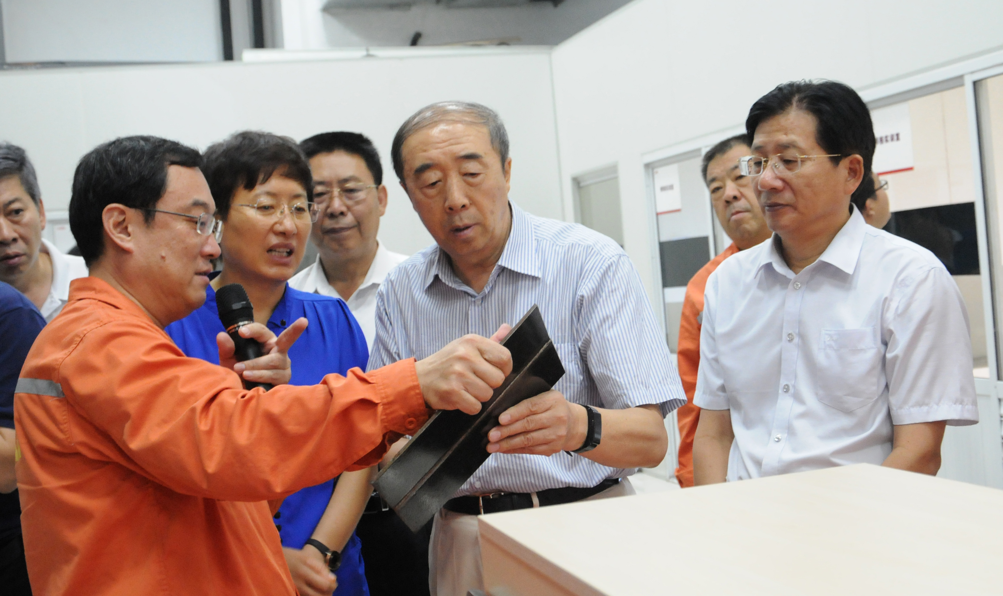 (图二:王随莲副省长在焊接实训区展示台,仔细观看员工焊接的合金钢、钛材等材质焊件。)