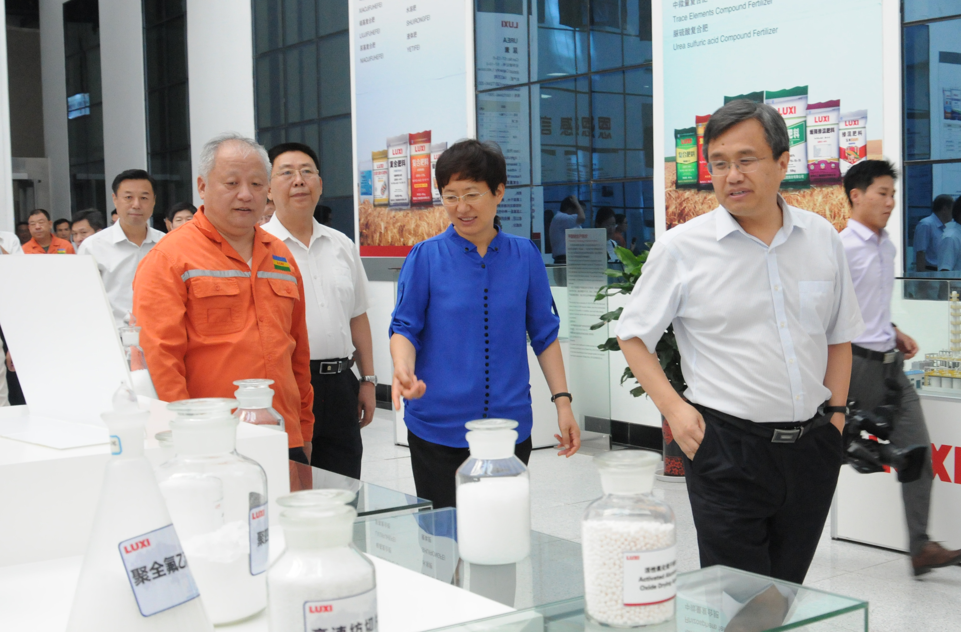 在产品展厅,张金成董事长汇报了集团近年来逐步实现由传统化肥向基础化工,由基础化工向化工新材料转型的做法,以及下一步的发展方向。王省长在现场看到集团研发的适应市场需求的化肥产品、品种多样的化工产品、精工制造的各类化工装备产品时,十分高兴。