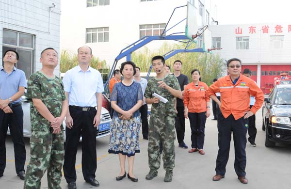 9月14日下午,山东省公安厅出入境管理局政委于娜,副调研员姜华涛,聊城市公安局党委副书记李学军、开发区分局局长李贺民一行来集团督查指导工作,集团董事长张金成,副总经理焦延滨、蔡英强、王富兴等领导陪同活动。