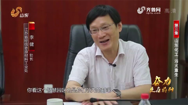 江苏省经信委原材料工业处处长李健说:“你看这个智慧园区也是你们领先的对吧,全国两个试点,我们鲁西这个试点,刚才我们看到了,确实是走在前列的。”