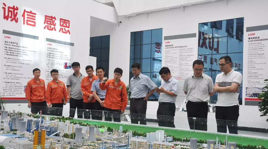 期间,刘总一行相继参观了园区生产装置、重型装备厂房、聚碳酸酯装置、产品展厅和运行指挥中心。听取了集团整体运营情况,以及产品结构调整、转型升级,员工技能培训、智慧化工园区平台建设等情况的介绍,对每日大赛