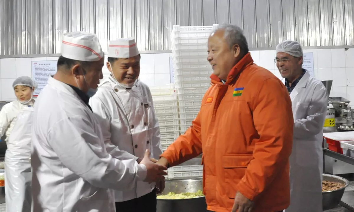 在餐厅,看着大家热火朝天一派忙碌的场景,董事长一再叮嘱要保障员工节日期间的饭菜调剂,确保加班水饺的供应。并查看了切配操作间的设备设施情况,要求综合服务部高度重视先进设备的引进和投用,对于员工在减人提效率方面的创新改造项目一定要进行表扬和激励。