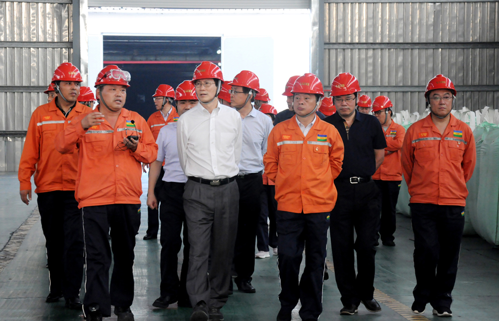 领导一行先后参观了园区重型装备、应急救援中心、尼龙6和聚碳酸酯包装现场、废水零排放、固废处置现场、催化剂生产装置、技术中心大楼和展厅。