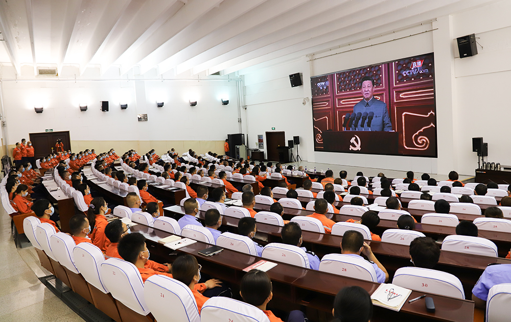 党委组织240名党员、干部代表集中观看了庆祝中国共产党成立100周年大会。大家通过观看直播的方式共同见证了中国共产党成立100周年这一伟大的历史时刻,人人心潮澎湃、群情振奋,感受着团结、奋进的时代脉动,满脸洋溢着发自内心的自豪和骄傲。