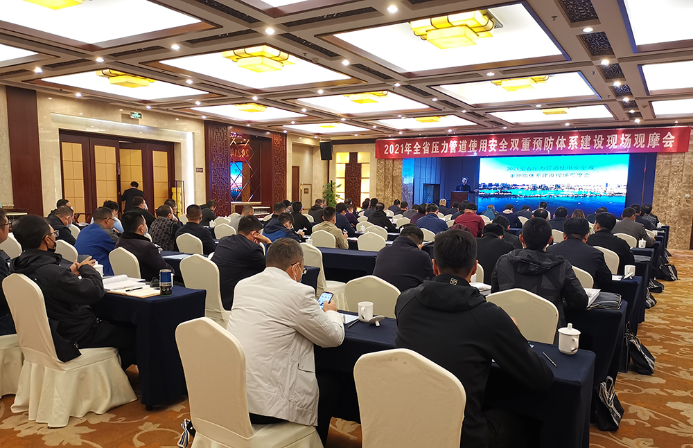 10月21日,2021年全省压力管道使用安全双重预防体系建设现场观摩会在聊城召开,山东省市场监管局及全省17地市市场监管局领导、32家压力管道使用单位负责同志100余人参加会议。