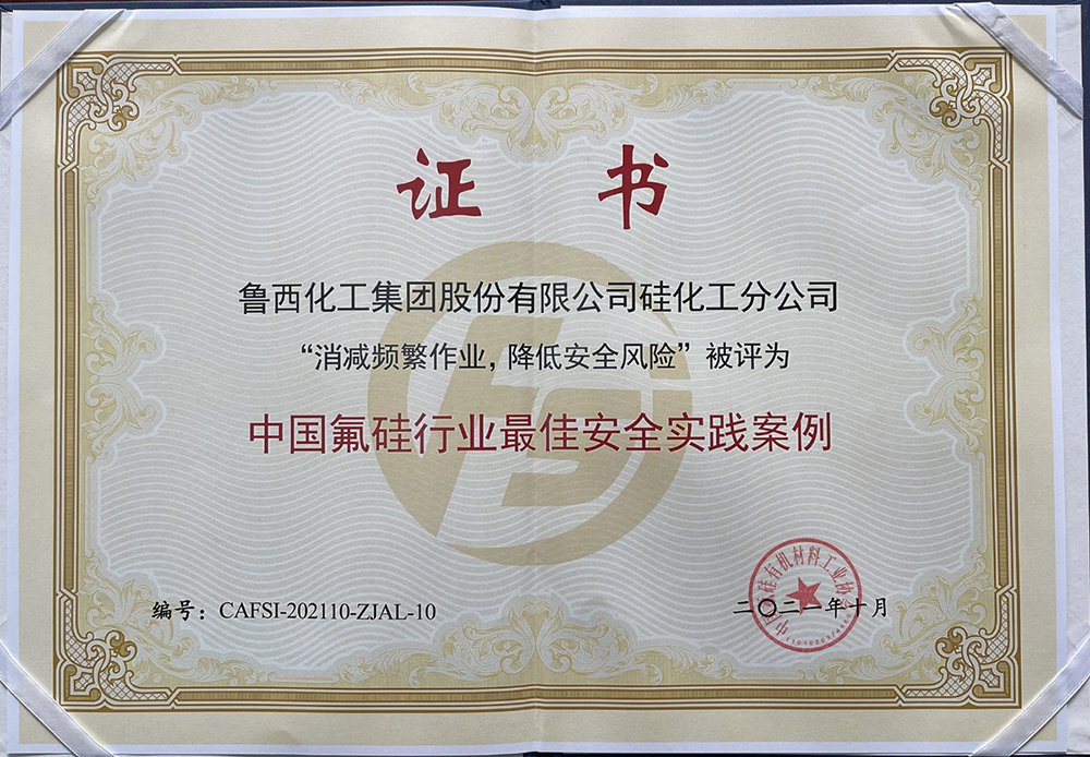 硅化工分公司“消减频繁作业,降低安全风险”作为案例入选中国氟硅行业“最佳安全实践案例”。