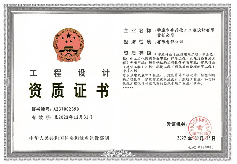 据了解,目前设计院现有资质包括:化工石化医药行业甲级、轻型钢结构专项甲级、环境工程(大气污染防治工程)专项甲级、固定式压力容器规则设计、压力容器分析设计(SAD)资质、石化化工医药专业资信甲级资质、建筑行业(建筑工程)乙级、环境工程(固体废物处理处置工程)专项乙级、市政行业(城镇燃气工程)专业乙级、工程咨询单位乙级资信(生态建设和环境工程)、GB1级、GB2级公用管道、GCD级工业管管道(限亚临界以下)、GC1级、GC2级工业管道等资质。