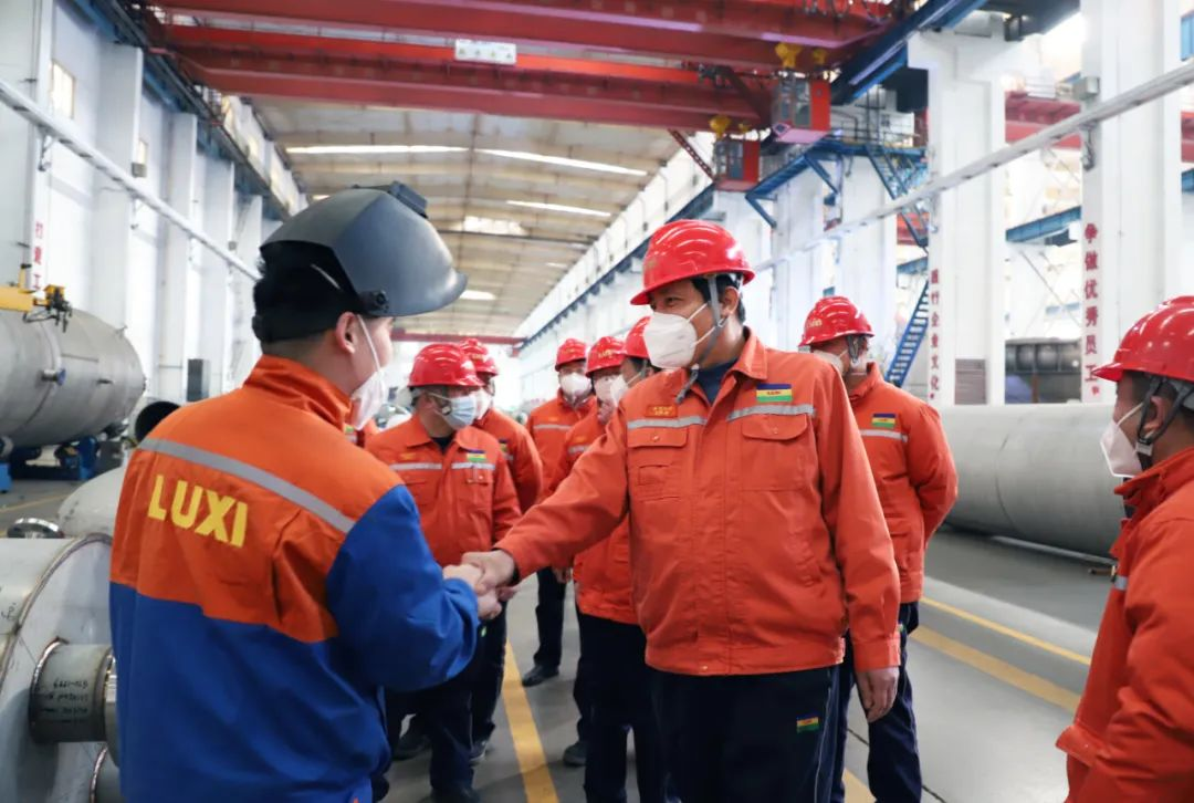 节日的装备制造现场依然是一派热火朝天繁忙的景象,管板加工、板材下料、备件焊接等工作正常开展。在第二、第三、第五工程事业部,手持焊枪和防护面罩的“钢板缝纫师”坚守工作岗位,璀璨的焊花似节日的烟花,映红了他们的脸庞。王延吉向大家拜年,与大家亲切握手交谈。同时询问了事业部负责人关键设备制作与安装情况,以及目前遇到的困难和问题。