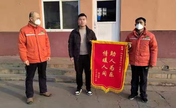 2月3日上午,市民张先生来到第五化肥厂,将一面印有“助人为乐 情暖人间”的锦旗送到五厂员工王东升的手中,并衷心感谢到:“真的非常感谢你,多亏了你,我爸才能平安回家”。