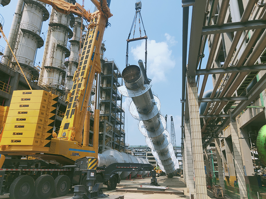 比如甲胺项目的14台高塔,直径大、高度高、保温厚,现场场地狭小,设备倒运及吊装难度较大,且脱氨塔、分离塔、脱水塔、甲醇回收塔必须分段吊装,加大了施工难度。为保障四台高塔顺利吊装就位,事业部上下齐心,坚持“一盘棋”思想,将四台高塔每一段平台爬梯及保温任务分配至车间及安装队,编制详细施工、倒运、吊装及对口计划。全过程党员干部现场带领员工加班加点,保证各环节无缝衔接。最终顺利完成甲胺项目高塔设备一体化、模块化吊装,为后续设备和管道安装奠定了基础,鼓舞了士气。