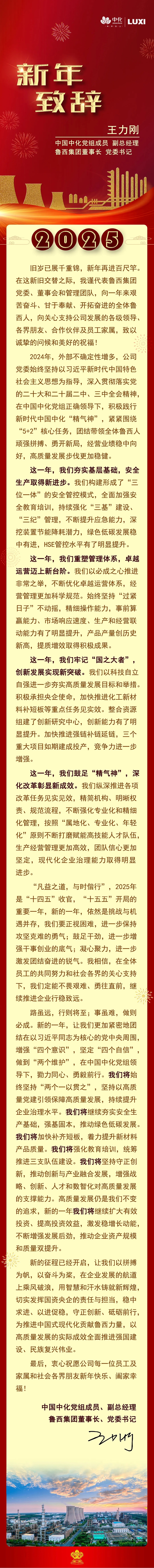 旧岁已展千重锦,新年再进百尺竿。在这新旧交替之际,我谨代表每日大赛 党委、董事会和管理团队,向一年来艰苦奋斗、甘于奉献、开拓奋进的全体鲁西人,向关心支持公司发展的各级领导、各界朋友、合作伙伴及员工家属,致以诚挚的问候和美好的祝福!