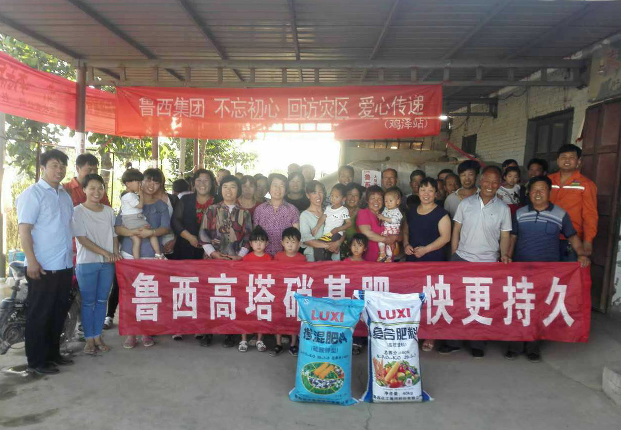 复合肥销售人员自发组成爱心救灾队,带着农作物生长急需的叶面肥,冒着雨后酷热的天气,在灾区逐村逐户的免费向农户发放。经过大家共同努力,共计发放村庄163个,发放叶面肥15万余袋,还带去了恢复农业生产所需要的植保知识,义务向大家进行讲解,得到当地农民朋友的高度赞扬。