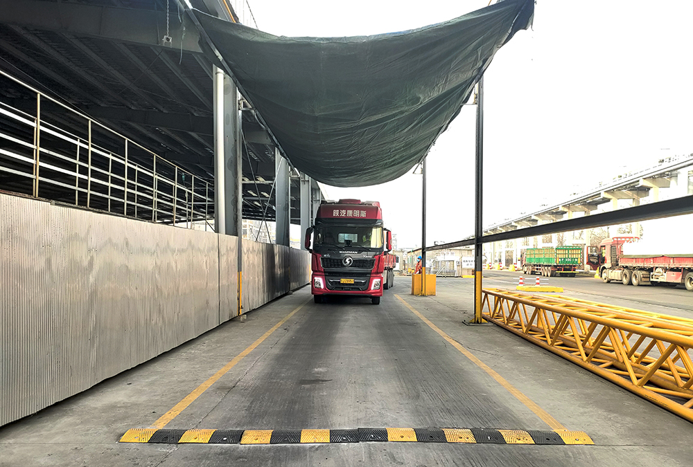 如果问起来这个工作怎么用,谭学山会模仿起宋丹丹老师,幽默的说“问:苫盖一辆车拢共分几步?答:三步。第一步:把绑带按包装袋尺寸固定在两根大梁上,再把篷布铺在绑带上方,也固定在大梁上。第二步:用遥控器把大梁升起来,再把车开进去。这一步美其名曰‘让篷布飞一会儿’。第三步,把大梁落下来,扎好绑带,系好篷布。完事!”