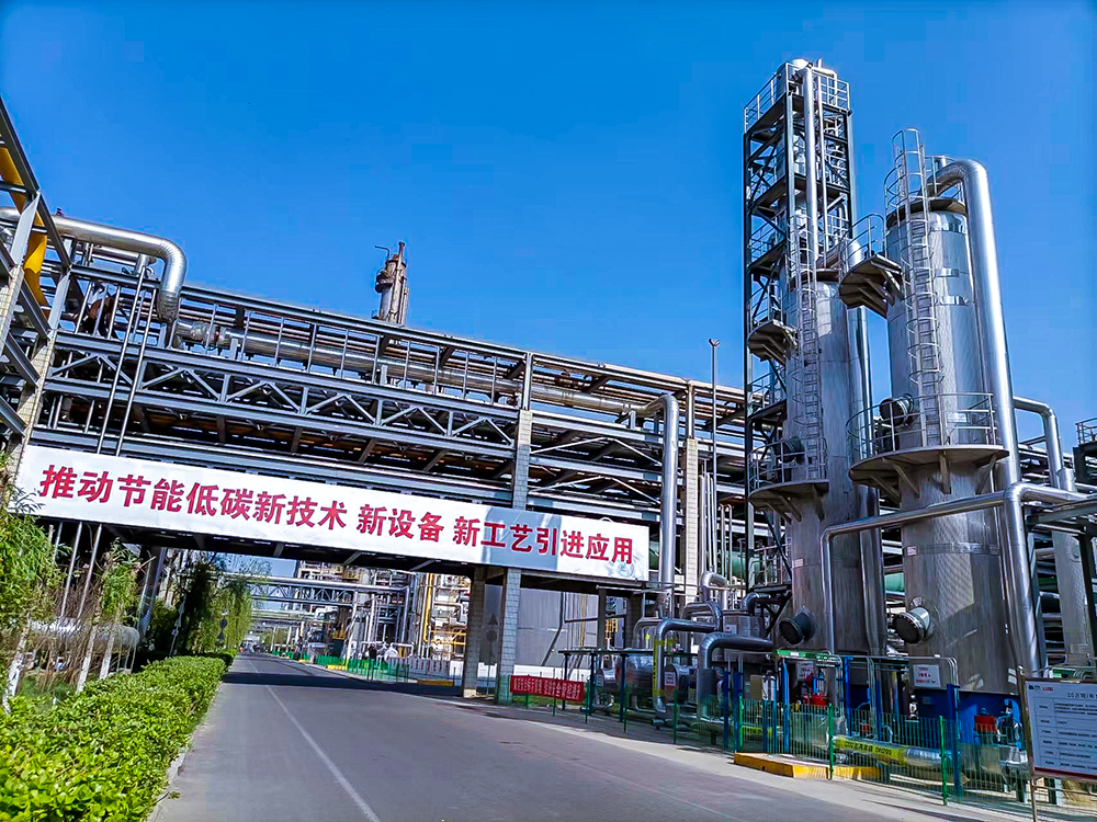 为减少园区二氧化碳的排放量,集团各级领导高度关注,对现有生产过程进行充分辨识,建设液体二氧化碳装置。采用新技术,捕捉二氧化碳,将生产过程中排放的二氧化碳分离出来,再通过碳储存手段将二氧化碳储存起来,通过对生产过程中排放的二氧化碳进行提纯,继而投入到新的生产过程中循环再利用,进而达到碳中和目标。液体二氧化碳回收项目投运后,每年可减少20万吨二氧化碳排放量。”