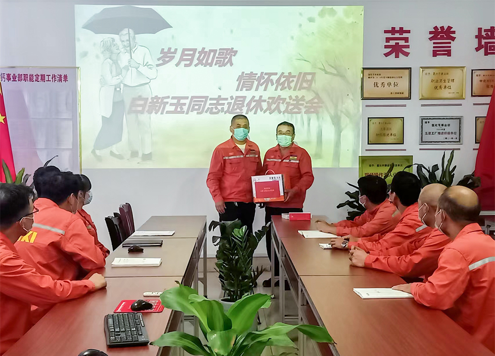 近日,在氯化钙事业部会议室,一场有温度有热度的退休员工欢送会正在如火如荼的开展着。“我是1988年6月28日来到鲁西参加工作,到现在已经有34年了,在这个期间我干过操作工,当过主任,厂区的角角落落我走了不知道多少遍,一起工作的同事换了一批又一批,这几十年可以说是一半的时间都在厂子里,看着企业一步步发展壮大,由衷的感到高兴,虽然前段时间已经做好了退休准备,现在要离开企业了,心里还是很不舍得……”在欢送会现场,退休职工白新玉回想起在厂工作的日日夜夜有些哽咽。事业部对白新玉同志多年来为企业做出的贡献表示感谢,并为其赠送纪念品,同事们也纷纷送上祝福。